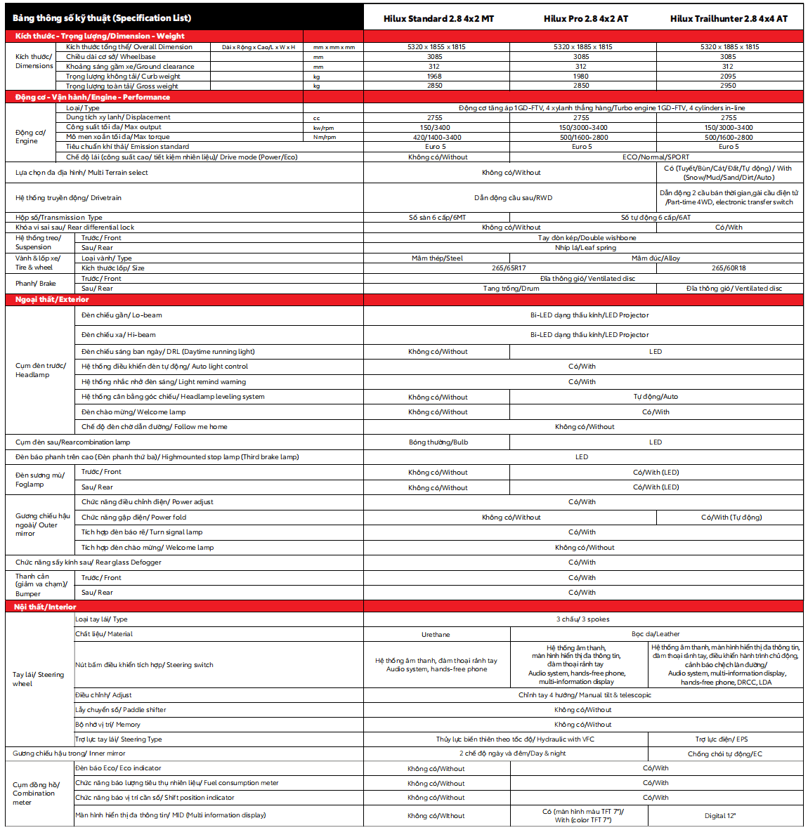 | TRAILHUNTER 2.8 4×4 AT | 903 Triệu | Giao Sớm |